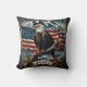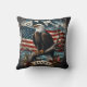 An eagle stands majestically on a branch, framed by the American flag and mountains in the background, symbolizing patriotism and freedom.