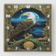 Eagle Perched Against Night Sky With Mountains Square Wall Clock