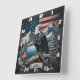 Eagle Perched on Branch With Mountains and Flag Square Wall Clock