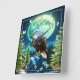 Eagle Perched on Rock Under Full Moon Square Wall Clock