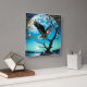 Eagle Perched on Tree Branch Under Full Moon Square Wall Clock