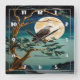 Eagle Perched on Tree Under Full Moon Night Square Wall Clock