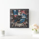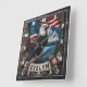 Eagle Perched With American Flag and Mountains Square Wall Clock