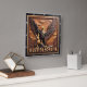This highly dimensional square wall clock features a close-up illustration of a brown eagle with a determined expression and a white, smiling rabbit sitting closely together. The entire design is rendered in muted brown, tan, and dark leather-like tones, strongly suggesting a deep sculpted relief or Sculpted Leather Look. The eagle is perched on the left, displaying detailed feathers, while the rabbit is on the right, appearing cheerful with long ears and textured fur. They are framed by a prominent, circular wreath of stylized leaves and branches carved into the perimeter. The background features detailed rocky terrain and stylized trees. The large, three-dimensional embossed text "BESTIES FOR LIFE" is carved across the top center in a bold, golden serif font. The clock face features a simple clock face border with large, white, numbered tick marks (1 to 12) integrated into the outer frame. The artwork is surrounded by a thick, dark brown decorative border that resembles a black wood frame.