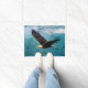 Welcome guests with strength and inspiration with this powerful doormat featuring a majestic bald eagle soaring above a stormy sea. The swirling ocean below, painted in bold abstract strokes of navy, slate, and deep gray, represents life’s chaos and distractions. But the eagle—detailed in crisp white, warm brown, and gold—glides above it all with confidence and grace. His piercing eyes and wide wingspan remind us to rise above the noise and walk in purpose. A striking entryway statement, this doormat is perfect for homes grounded in faith, resilience, and bold style.