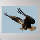Capture the awe-inspiring power and grace of nature with this poster of an eagle swooping down in mid-air. The eagle's sharp, piercing eyes and widespread wings create a dynamic and dramatic scene, perfect for wildlife enthusiasts and lovers of natural beauty. Ideal for homes, offices, or educational spaces, this artwork brings the wild into your daily life, reminding you of the strength and freedom that the eagle symbolizes.