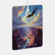 A personalized Christmas ornament with a serene illustration of an Eagle soaring above a canyon and river.