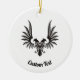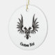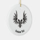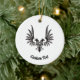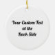 Lightweight, smooth, pure white ornament with nice sheen. Perfect size to be seen from across the room ... and to attract closer inspection! Price was great for ordering enough for the whole family! Clear, bold black design just as requested. Matches the order exactly. Just so nice!
