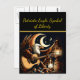 An illustration of an eagle playing guitar under a crescent moon with stars.