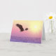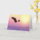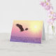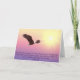 The front of this inspiring card features a beautiful image of a majestic bald eagle flying in front of a brilliant golden sun. The eagle and sun are placed against a purple pink sky. The text, in purple blue at the bottom, quotes the wonderful text from Isaiah 40:31, "But they that wait upon the Lord shall renew their strength; they shall mount up with wings as eagles; they shall run, and not be weary; and they shall walk, and not faint." The inside of the card has a text field for your own personal message, or, if you prefer, you may blank out the text for a handwritten message. Inspirational and encouraging.