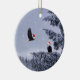 Bald eagles with Santa hats in a forest with snow on a ceramic Christmas ornament. Perfect for nature lovers!