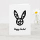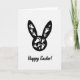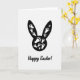This design shows a large black silhouette of a long-eared bunny filling the upper part of the card against a bright white background, creating a strong two-tone look 🐰. Inside the bunny shape, small white paw prints are sprinkled in different sizes, like a trail of little steps crossing paths in a way that feels friendly and close. The scattered prints suggest unseen companions moving together, as if two rabbits have been hopping side by side and brushing shoulders along the way 🐇. The simple black-and-white palette keeps the focus on the smooth curves of the ears and back, and on the gentle rhythm made by the footprints. Near the bottom, a short Easter greeting appears in black cursive-style lettering, centered beneath the silhouette. The message sits with plenty of white space around it, so the words feel light and airy under the heavier shape above. The overall layout is tall and balanced, with the bunny taking about the top two-thirds and the text anchoring the lower section. The final detail is the cluster of tiny white prints near the lower edge of the silhouette, where they thin out as they drift toward the center.