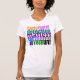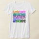 The material is a great quality that is hard to find with most tee shirts. Fabric was not see-through or thin at all, but was also very soft and comfortable. The shirt description states that it runs a little small, so I sized up one size for a perfect fit! I would definitely buy this type of tee shirt again because I love the fit and high quality fabric that I cannot find anywhere else. The printing was perfect and just as pictured. Loved the cute quote and really enjoy the tee in both the quality and design. I love quirky typography designs and funny quotes and I am extremely pleased with the overall quality and value I get at Zazzle!