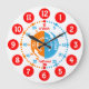 Colorful kids graphic wall clock color coded to help assist your child to read a clock. This colorful teaching aid includes minutes and hours and past and to making child's play of telling the time. Designed exclusively by Sarah Trett. A great addition to a child's bedroom who is just learning to read a clock face.