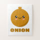 Promote cognitive development with this early learning jigsaw puzzle featuring a large cute onion character with the word "Onion" in bold text.