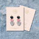 If you design your own earrings for sale or are a wholesaler with your own brand, this display card is perfect for your needs. Add your square or circular logo to the top. There are markers for the placement for the earrings. Add your custom text at the bottom. The reverse has your logo at the top, and a thank you to your customer in the center. There is also your business address and contact details. It's a great way to ensure repeat business. Whether you have a traditional store or an online business, this will make your earrings look professional and beautiful. The placement of the holes is perfect for drop earrings or studs. They also won't impede the information on the reverse. This is on a blush background although other colors are available. If you prefer a specific color, you can do this through the edit menu, or contact the designer who will happily do it for you.