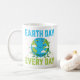 This cute coffee mug features a lovely cartoon illustration of our planet with a happy expression and the wording "Earth Day Every Day" in a blue and green all-caps font. This t-shirt makes the perfect way to raise awareness about environmental protection and to honor our Planet Earth on Earth Day and every day.