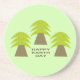 This awesome sandstone coaster features a graphic image of three trees that resemble palm trees with large green leafy fronds and a sturdy brown tree trunk. There is a message in brown text to look like soil under the trees. The message says Happy Earth Day.