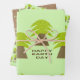 This awesome gift wrap set features a graphic image of three trees that resemble palm trees with large green leafy fronds and a sturdy brown tree trunk. There is a message in brown text to look like soil under the trees. The message says Happy Earth Day.