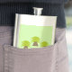 This awesome flask features a graphic image of three trees that resemble palm trees with large green leafy fronds and a sturdy brown tree trunk. There is a message in brown text to look like soil under the trees. The message says Happy Earth Day.