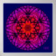 Kaleidoscopic digital design from a photo of a winter sunset behind bare trees.