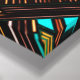 This is a design that radiates with layered diamonds in turquoise and amber. It is both ancient geometry and modern vibe at once.