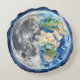 Earth & Moon Watercolor Galaxy Celestial Design Round Pillow