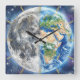 Earth & Moon Watercolor Galaxy Celestial Design Square Wall Clock