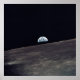 A view of Earth rising above the lunar horizon photographed from the Apollo 10 Lunar Module, looking west in the direction of travel. The Lunar Module at the time the picture was taken was located above the lunar farside highlands at approximately 105 degrees east longitude.