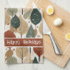 If you are wondering what color combinations to pick for your Christmas decor and gift wrap supplies this year, I've created collections of coordinating patterns to make life just a bit easier. This Christmas kitchen towel features a flat art pattern of leaves and Christmas trees dotted with snowflakes all in a warm, earth tones color palette, Add your favorite Holiday greeting or other text using the provided template to add your text. Search ID1009 to see other products and patterns in this color scheme.