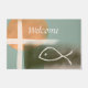Earth tones cross and fish minimalist art doormat