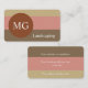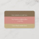 The front of this classy design features a color palette of earth tones in khaki tan, terracotta pink and and brown with a rusty brown round monogram and elegant white font and a place for you to add your business title in the bottom right. On the back the color stripes are flipped and there are three places for you to add your contact details in the same white font. All elements of this design can be fully customized or you can leave it as is and just change the details to your own and you're done!