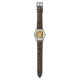 I was uncertain about the size being too small but it looks good. The case looks like aluminum (not shiny) and the time is easy to see. I changed the band because the leather doesn't go with my lifestyle.a. Exactly what I expected, nice yellow. It grabs peoples attention.