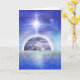 Blue image of Earth half submerged in water with large star in sky above. By Daniel B. Holeman.