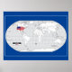 A black and white world map with the USA filled with Flag colors. Distinctive.