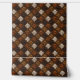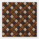 This crochet-inspired pattern showcases a beautifully detailed arrangement of granny-square florals set on a diagonal grid, creating a warm and inviting tapestry-like effect. Each square features a starburst-style flower rendered in richly textured yarn, with shades of ivory, caramel, chestnut, espresso, and golden ochre giving the design a cozy earth-tone palette. The squares are connected by thick, braided borders that enhance the handcrafted feel and add rhythmic structure across the seamless repeat.