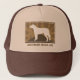 Three wooden, earthy tones make up this funky Australian Cattle Dog hat. The dog breed's silhouette is in the center, with radical angles in the background. Below is the breed name. Fun Australian Cattle Dog gifts for dog lovers.