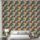 Tropical Boho stylized floral and leaves pattern peel and stick wallpaper. Create a warm earthy accent wall with this unique pattern, or embellish the inside back of a shelf or the front of a credenza. Think out of the box for some DIY fun creating your home decor style.