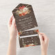 Earthy Burnt Orange Floral Pumpkin Wood Wedding All In One Invitation