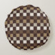 A checkerboard pattern with alternating dark brown, light brown, and beige squares, creating a sense of rhythm and visual depth.