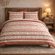 This earthy modern terracotta cream pattern duvet cover featuring warm neutral tones and a relaxed woven inspired design with repeating motifs that add texture and depth without overpowering the space. The balanced pattern styles easily in modern boho, rustic, or neutral bedrooms, pairing beautifully with cream bedding, natural wood, and layered textiles for a calm inviting look that feels timeless beyond trends.