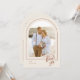 An elegant and modern earthy neutral arch-shaped wedding thank you card that features a trendy handwritten style "thank you" text and sleek borders around your photos. Personalize the template with your initials, wedding date, message, and photos. All text, elements, and background colors are editable so that you can create a custom card that matches your photo perfectly. © Kimbellished, LLC