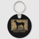 Three wooden, earthy tones make up this funky Rhodesian Ridgeback Keychain. The dog breed's silhouette is in the center, with radical angles in the background. Below is the breed name. Cool Rhodesian Ridgeback gifts for dog lovers.