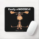 Funny cartoon moose sits in a straddled position with a silly look on his face. He is looking easily amused in this fun wordplay image. Fun for any moose lover or one who is easily amused. Original design by Christie Black of Creations from the Heart.