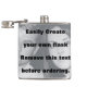 Easily create your own personalized liquid flask. Change image with your own photo and click on Customize to resize image and add text and make your flask. Great for special occasions such as wedding s and birthdays. Delete the large text before ordering. Great gift for you or family and friends.
