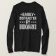 I love this shirt. I had written to the artist asking her if this picture was available on a shirt, and she wrote me back telling me where I could find the shirt. These shirts can be custom made to have a different saying. I loved this saying and went with it. The artist wrote me back later to tell me that she had seen my order go through. How's that for service? Pretty special. It's just as displayed. Perfect!