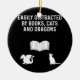 Easily Distracted by books cats and dragons Ceramic Ornament