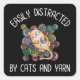 Easily Distracted By Cats And Yarn. Funny & cute yarn lover gift for a knitter, crocheter or yarn addict, who’s also a cat lover! Perfect if you love to knit, crochet or crafting with yarn. Includes a cartoon of a kitty sleeping on a pile of yarn. Do you love knitting, crocheting or weaving? Love to craft with wool, cashmere, alpaca or angora yarn? Do you like to use knitting needles, a crochet hook or a loom, and you’re a crafter who loves the fiber arts & cats? Then this design is for you!