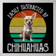 Easily Distracted By Chihuahuas. This funny & cute chihuahua accessory is a perfect dog lover gift for a man, woman, teens & kids who own and love a chihuahua dog. If you're the proud owner of a pet chihuahua, and you love dogs & puppies, this design is for you! Includes a cute graphic of a chihuahua set against a retro vintage distressed sunset background.