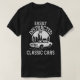 My 11 yo wore adult XL (5’7” 165#). The 8yo is small framed. She wore adult small and tied it in the back. Grandma wore adult large with long sleeve shirt underneath. Tall girl adult medium. Dark haired male adult large. Good quality dark Heather gray, Gildan brand shirt. -it was next up from basic choice and cost about $20 per shirt. Not too thick or thin. Washed and dried well, no major shrinkage. Not see-through. Can wear a bra under it fine. Screen print is just as shown and well done, front and back.